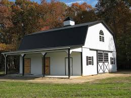 With no interior walls or support posts our engineered gambrel truss design optimizes useable upstairs interior space. We offer eight sizes of our two story gambrel barn design in 4 width increments from 8 to 36 feet and lengths from 12 to 60 feet or longer. In the past property owners who wanted a barn were often stuck with an expensive wood gambrel style barn that took weeks to assemble.