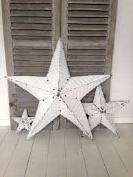 From shop amishcopperstars 109 00 free shipping favorite add to 16 32 solid or rustic white galvanized metal tin painted barn star farmhouse country decor rust resistant outdoor decor amishwares. The stars are cut and bent by our amish friends here in ohio and then painted by us here at metal barn stars. Use a large barn star to decorate any indoor or outdoor space.